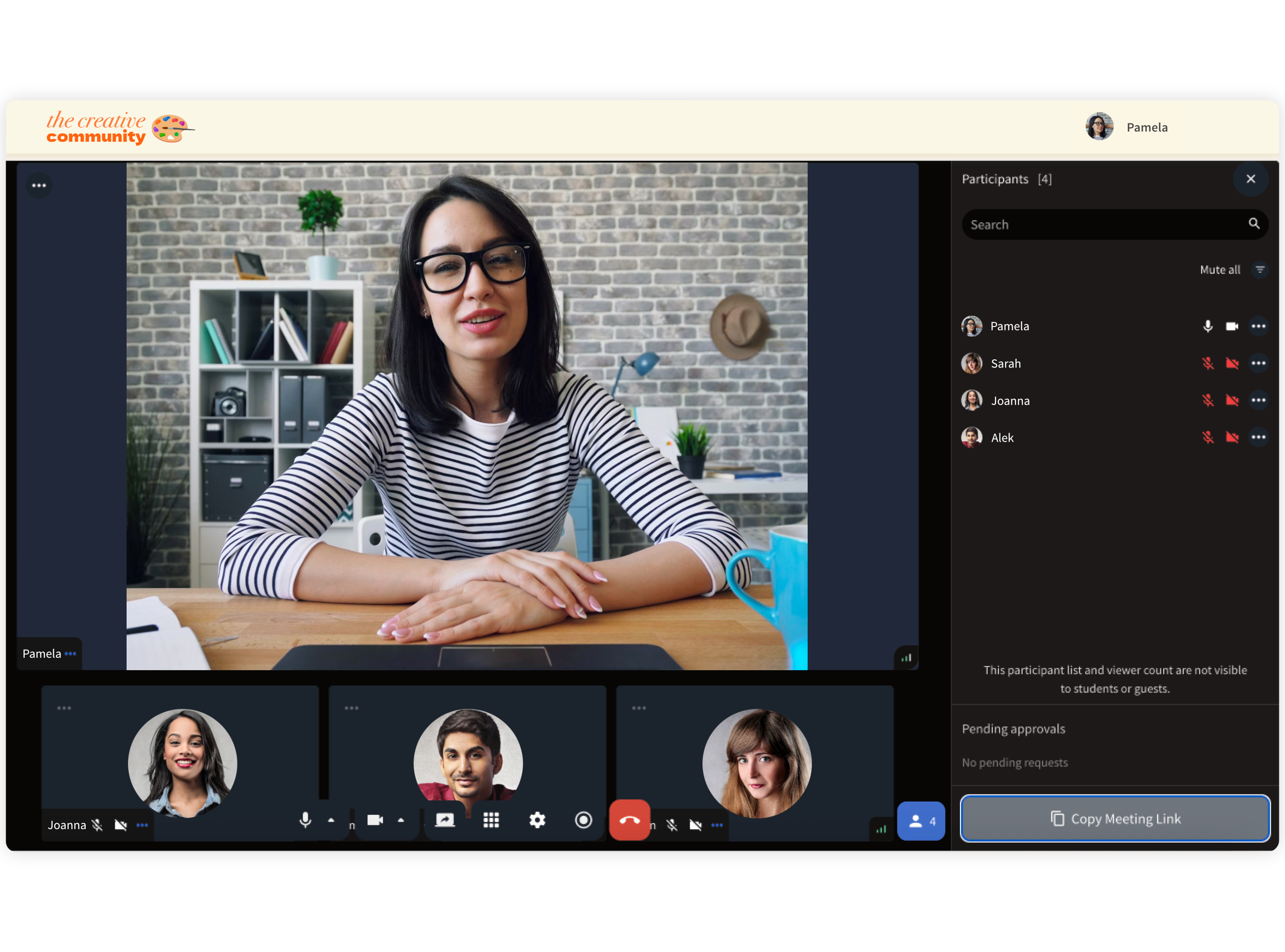 Meeting Rooms are designed for interaction. Everyone in the call can turn on their camera and microphone (if you allow it), making them perfect for group coaching, mastermind sessions, or community discussions. You can also require approval before participants join, giving you full control over who enters the call.