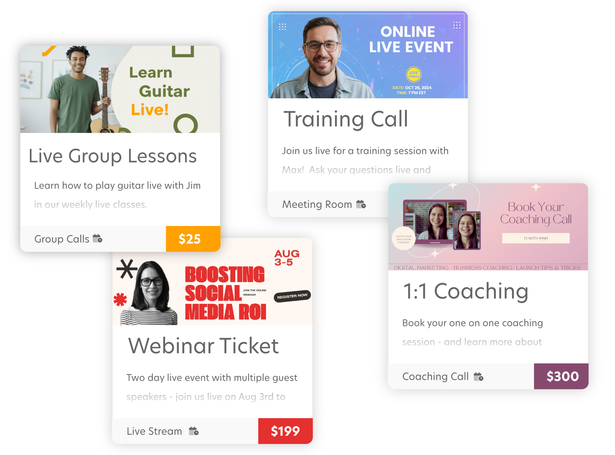 - Digital Streams and Meeting Rooms: Sell or offer access to live events, workshops, or coaching sessions as part of your digital products.