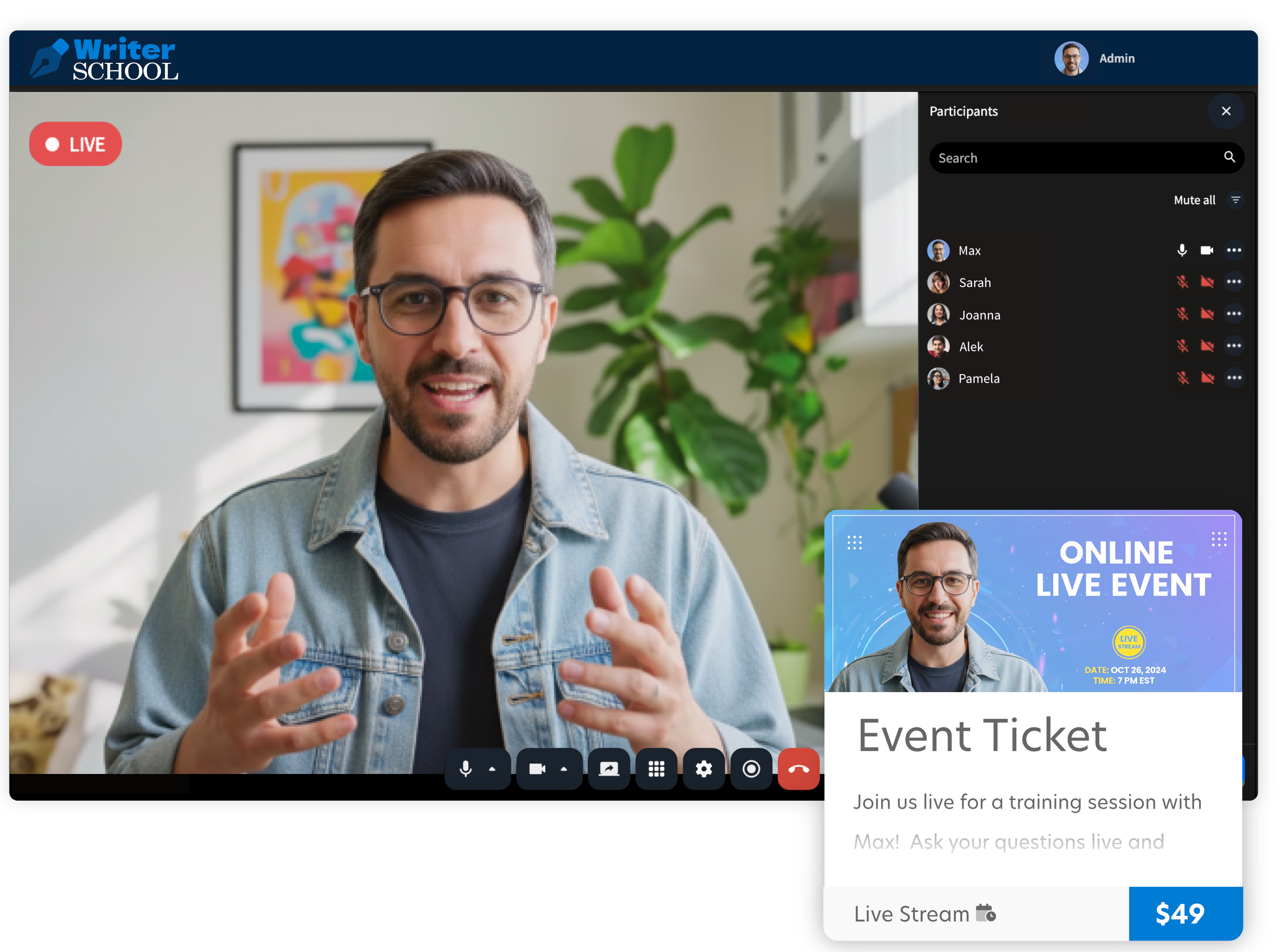 - Live Lessons: Host interactive lessons inside your courses. The session recording automatically saves as a video lesson.